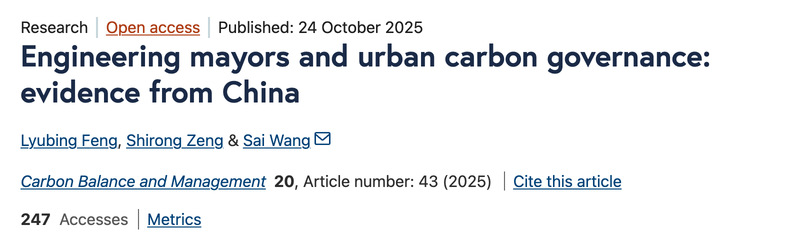 论文将“干部专业资本”纳入气候治理研究框架,为发展中国家依托“技术型官员”实现碳达峰、碳中和提供了可复制、可推广的中国方案。研究成果已被列入Carbon Balance and Management 2025年第20卷第43期,并获Springer Nature开放获取全球传播。