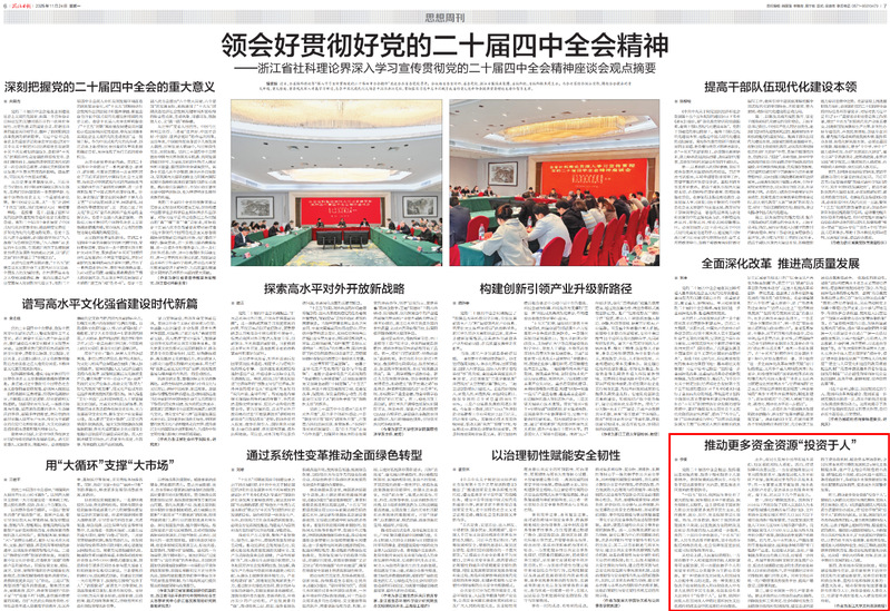 《浙江日报》刊文《推动更多资金资源“投资于人”》
