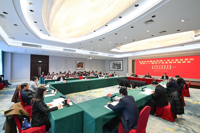 11月18日下午,浙江省社科理论界深入学习宣传贯彻党的二十届四中全会精神座谈会在省委党校召开。会议由省委宣传部、省委党校、浙江日报、省社科院、省社科联共同主办。省委宣传部常务副部长、省社科联主席来颖杰讲话,省社科联党组书记、副主席范庆瑜主持会议。