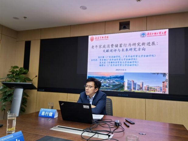讲座伊始,易行健教授援引联合国及我国最新老龄人口数据,指出全球与中国均已步入深度老龄化社会,老年家庭的消费储蓄与财富积累问题具有重要的理论与现实意义。他系统回顾了老年家庭消费储蓄行为的经典理论框架,从确定性的生命周期—持久收入假说,拓展到包含寿命、健康、医疗支出、收入等多重不确定性的理论框架,并引入行为经济学与新家庭经济学视角,全面剖析了影响老年家庭决策的复杂机制。通过国际比较,易教授指出,发达国家老年家庭退休后消费降幅明显但财富消耗较慢,主因是健康风险与遗赠动机;而中国家庭呈现“消费缓降、储蓄率高”的独特模式,深受储蓄文化、代际支持及社保发展阶段影响。他强调,理解中国老年居民家庭消费问题需立足本土制度与文化背景。方法论上,他介绍了简约式与结构估计等方法,以及大数据应用对因果识别与异质性分析的推动,并分享了通过数值模拟评估养老、医疗、住房等政策效应的成果,为政策设计提供实证依据。