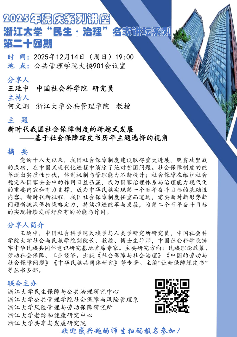 活动预告丨浙江大学“民生·治理”名家讲坛系列第二十四期