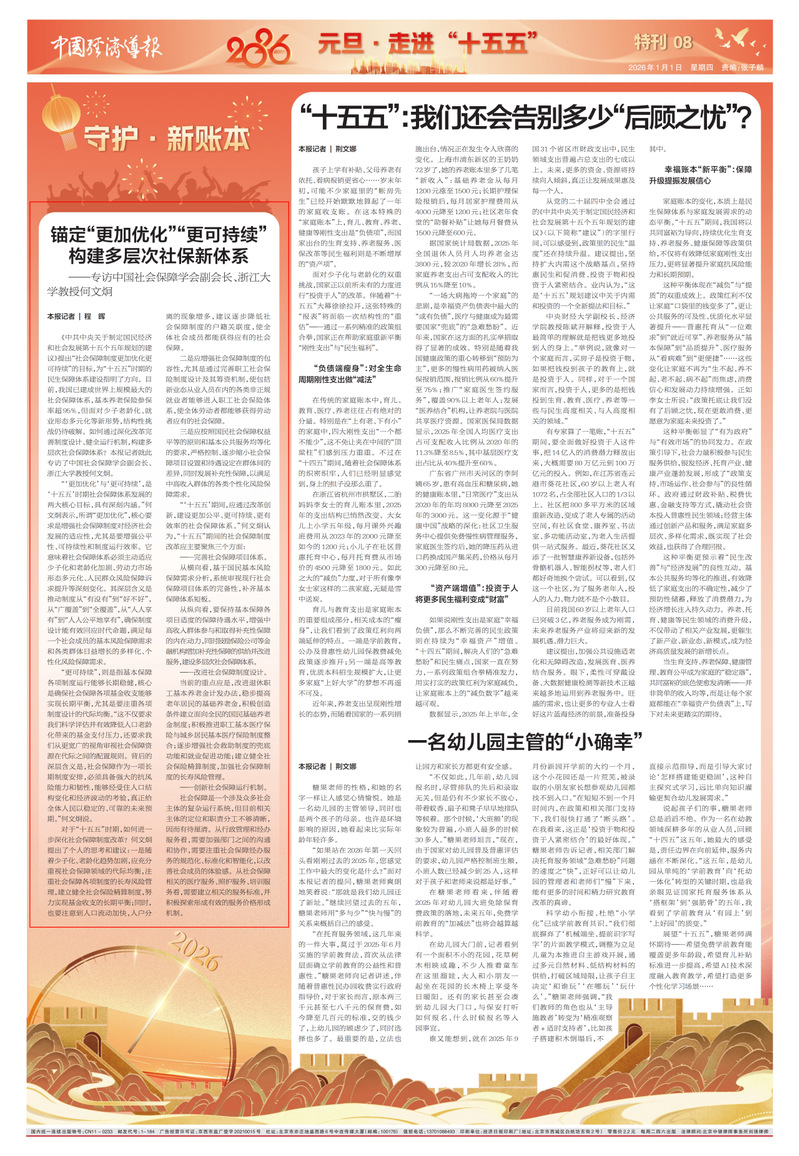 “‘十五五’期间,应通过改革创新,建设更加公平、更可持续、更有效率的社会保障体系。”何文炯认为,“十五五”期间的社会保障制度改革应主要聚焦三个方面:
