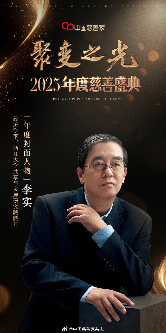 1月8日,由《中国慈善家》杂志主办的“聚变之光”2025年度慈善盛典在京隆重举行。在这场聚焦中国公益慈善力量的盛会上,李实院长荣获“2025年度人物”荣誉。