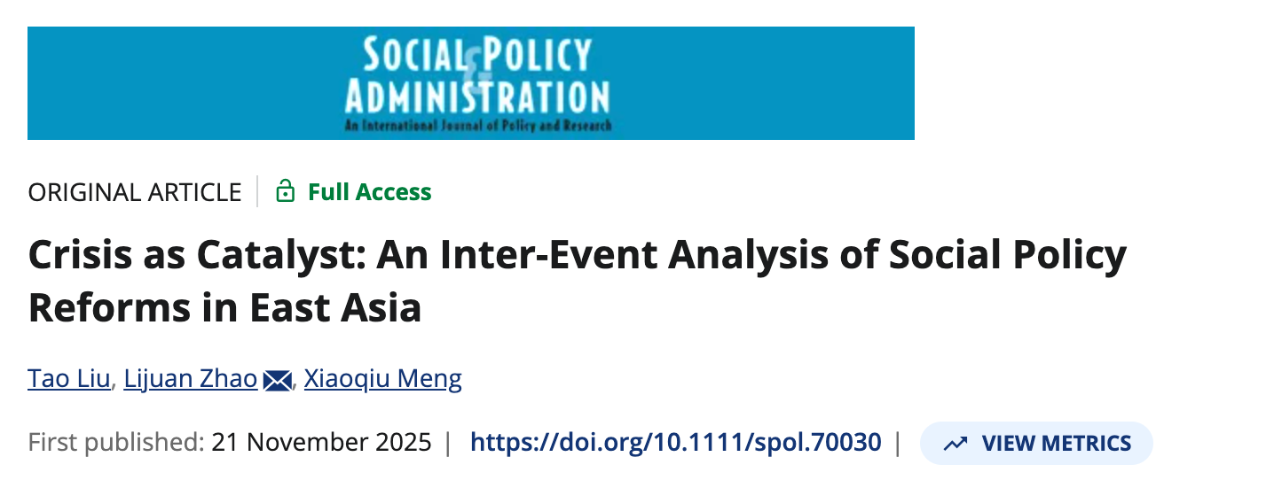 论文发表丨刘涛、赵丽娟、孟小秋:应急治理中的危机事件何以驱动改革?东亚社会政策演进的“跨事件”分析